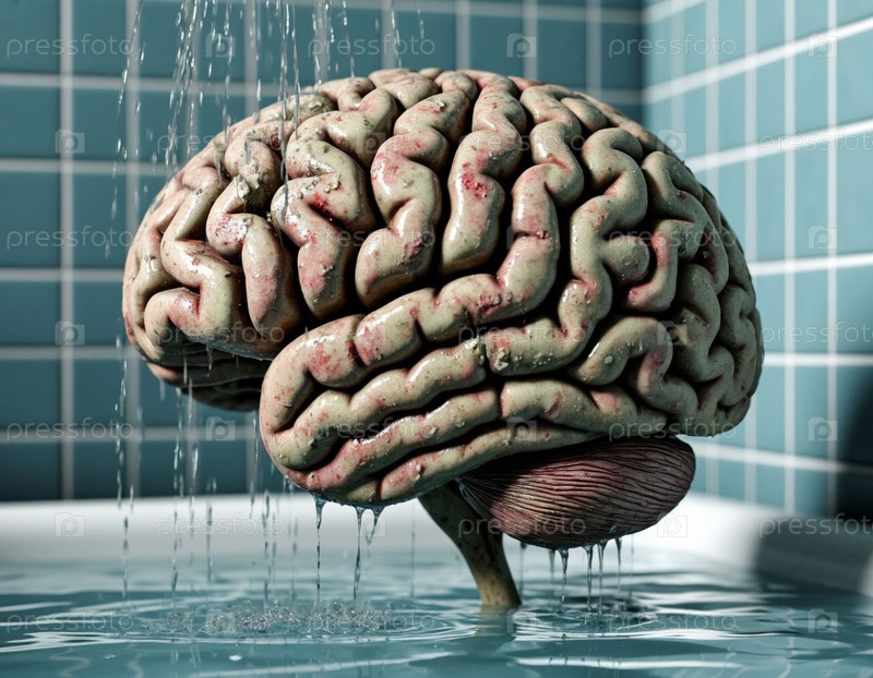 Мозг мужчины в форме под мотым душем