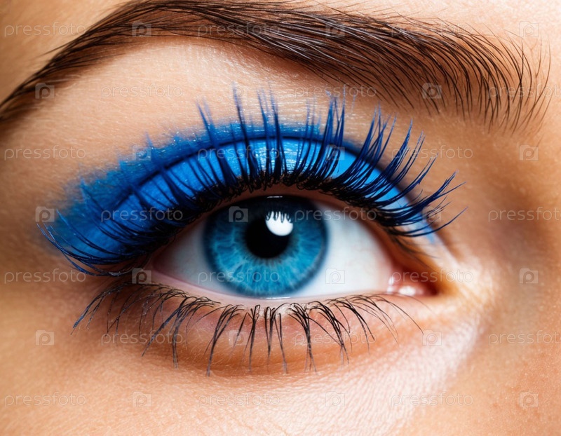 Макроснимка глаза, окрашенного в голубую маскару