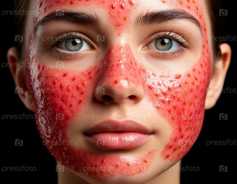 Естественная клубничная маска на лице женщины