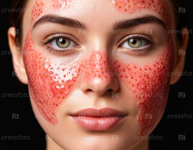 Естественная клубничная маска на лице женщины
