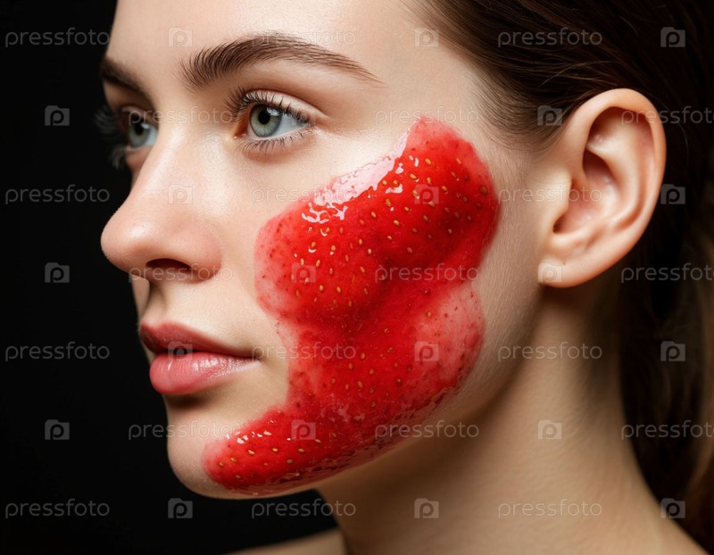 Естественная клубничная маска на лице женщины