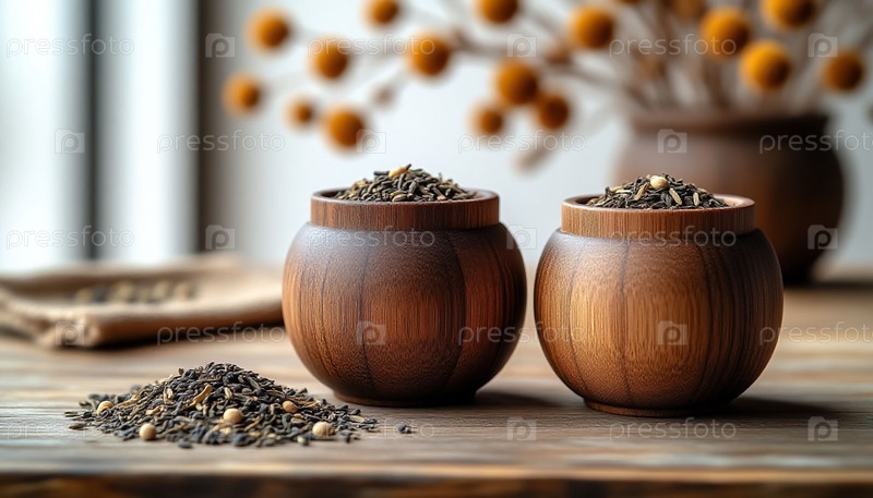 Органический цветочный травяной чай в деревянных банках