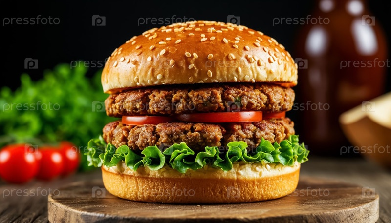 Экологически чистый растительный гамбургер с соевым мясом и веганским