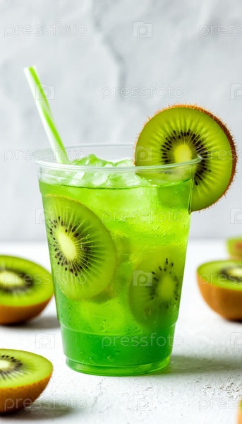 Зеленый лимонад с киви в стакане