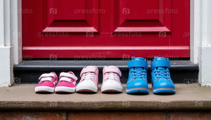 Детские туфли разных размеров у входной двери