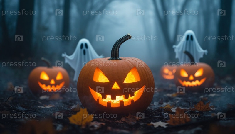 Сияющие тыквы в лесу и призраки, Хэллоуин