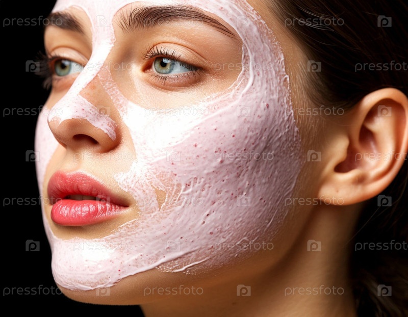 Естественная клубничная маска на лице женщины