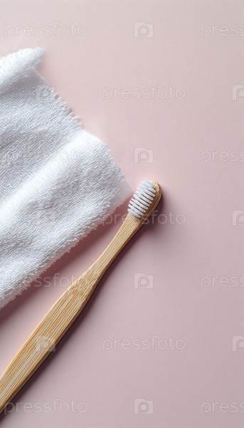 Стабильная зубная щётка из бамбука на мягком розовом фоне