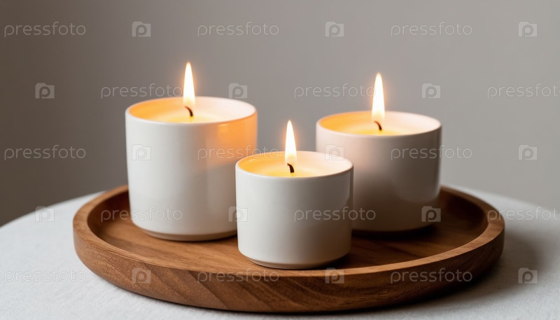 Три декоративных свечи в белых керамических стойках