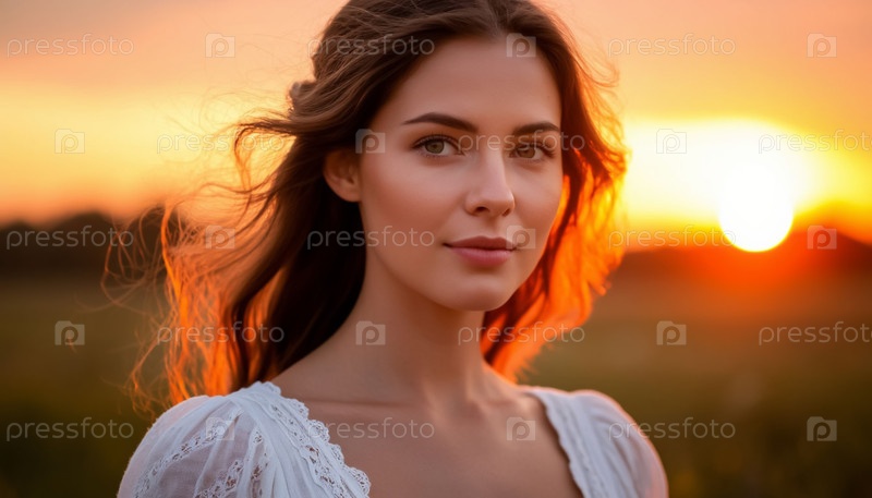 Красивая девушка в белом платье на закате