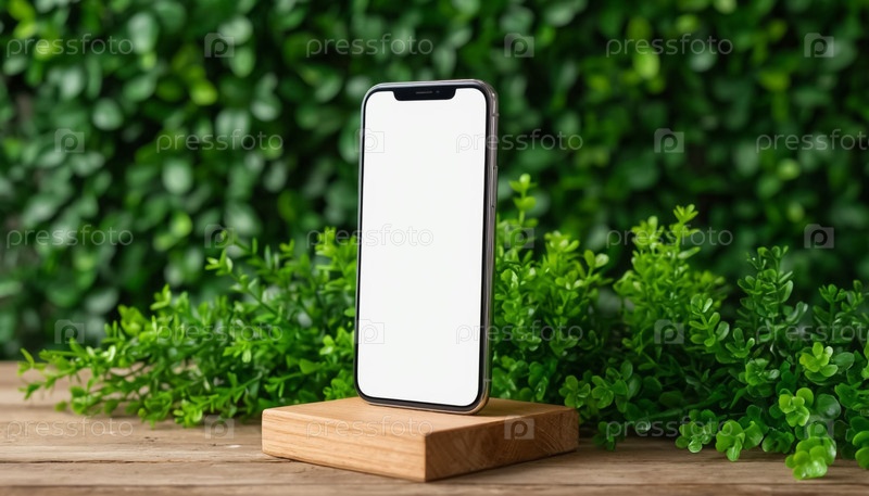 Смартфон пуст с пустым макетом экрана на зеленом фоне