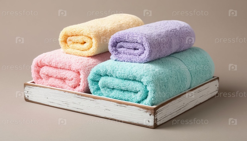 Пастельные полотенца в белой деревянной коробке