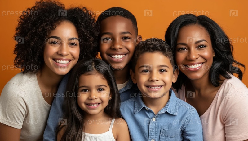 Африканские американские родители с детьми Счастливая фотостудия