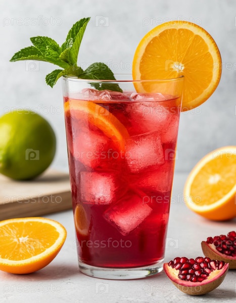 Мохито лимонад из апельсина и граната в стакане