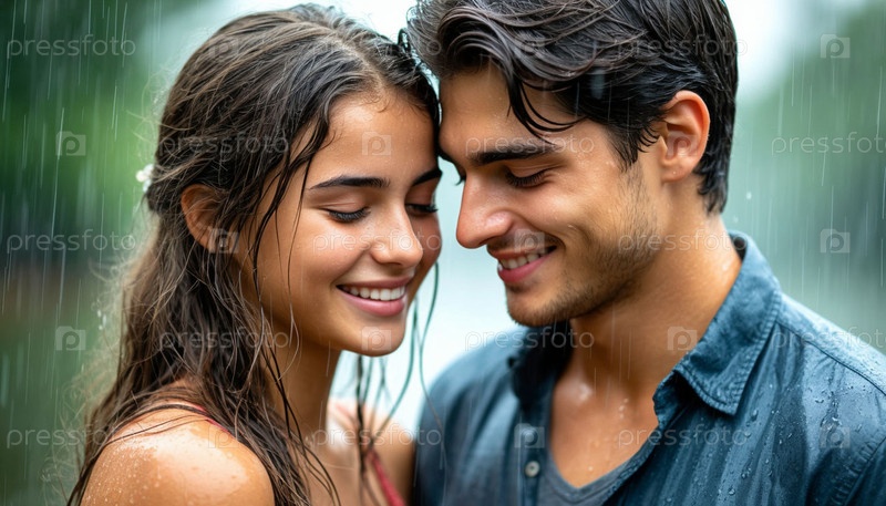 Мальчик и девочка счастливы под дождем