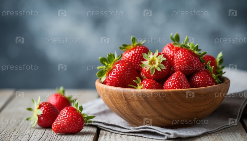 Зрелые клубники в деревянной тарелке