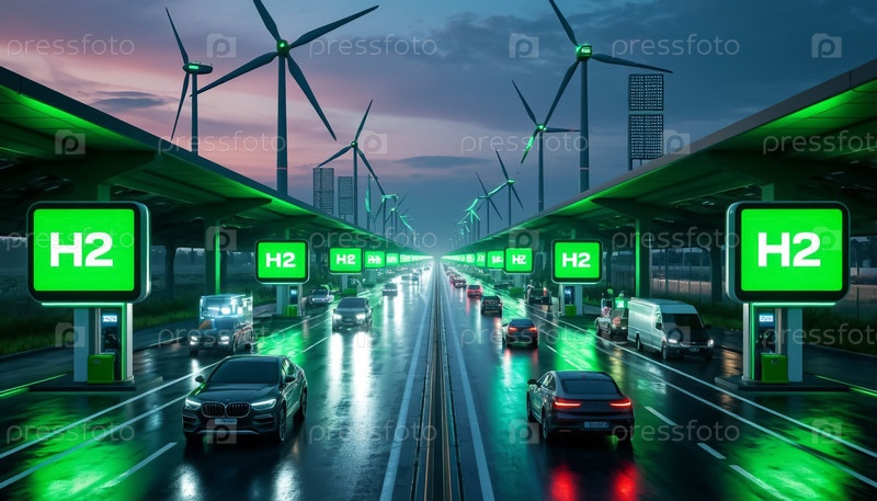 Будущее шоссе с водородными грузовиками и автомобилями на топливных элементах, углеродно-отрицательная инфраструктура