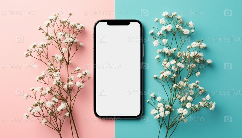 Смартфон пустой с пустым макетом экрана на пастельном фоне