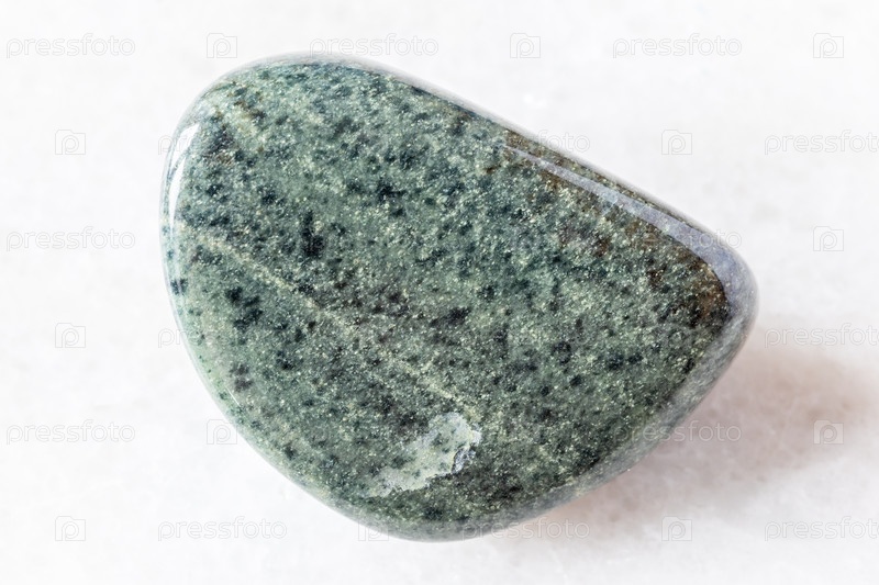 Образец полированной зеленой кварцитовой породы на белом