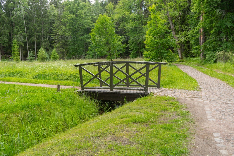 'Каменная дорога в Китайскую долину с мостом и растениями'