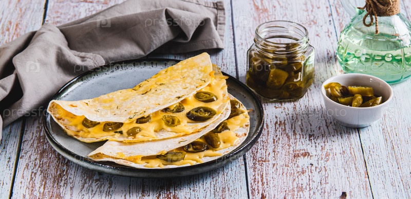 Пикантная квесадилла с сыром и перцем халапено на тарелке за столом