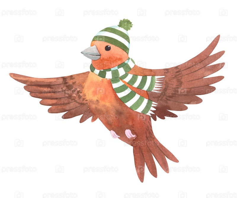 Птица в шляпе. Иллюстрация акварельных красок ручной работы. Для дизайна упаковки, карт, обложек, принтов, этикеток на продуктах и тканей