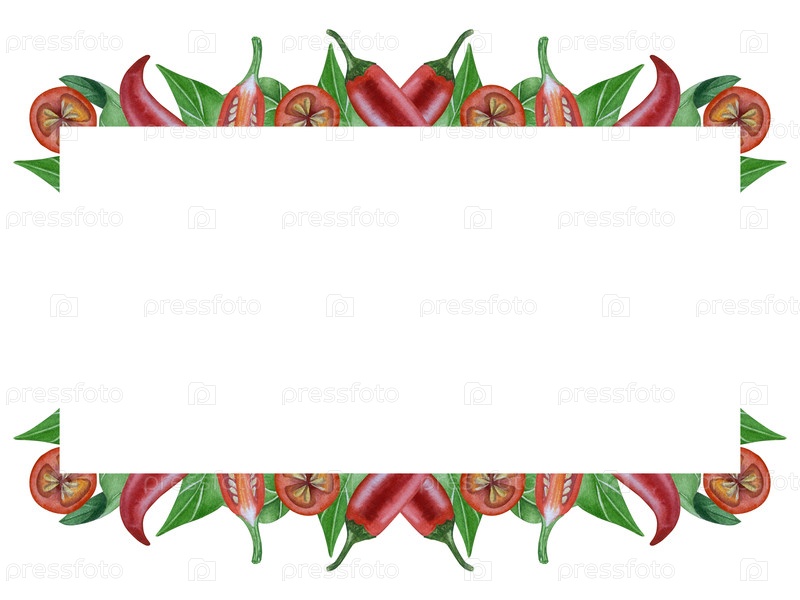 Целые и нарезанные бутылки красного чили выделены на белом фоне. Ботаническая акварель ручной иллюстрации острой овощной культуры с зеленым листьем. Для дизайна упаковки, меню ресторана, кухни