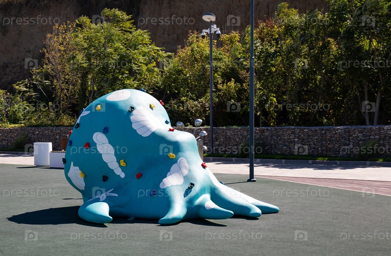 Детская каменная инсталляция в форме осьминога на набережной Тамана летом
