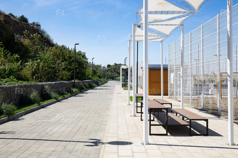 Следа гранитных плит на набережной Тамана летом