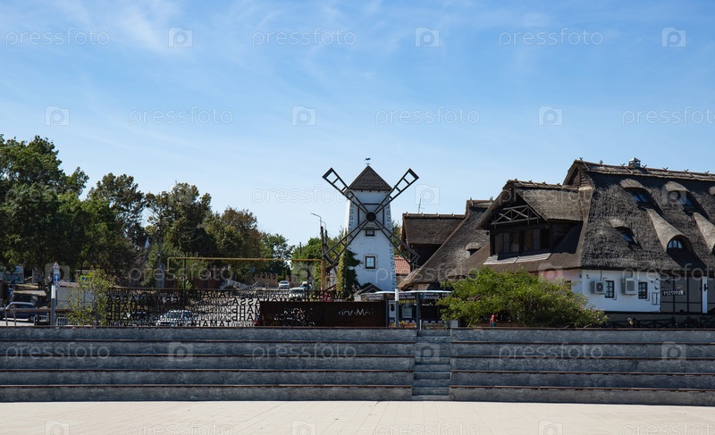 Декоративная мельница на Таманской набережной летом