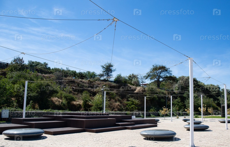 Деревянные и каменные установки на Таманской набережной летом