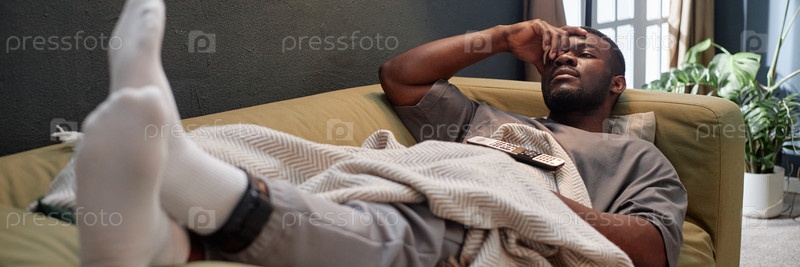 Header Image of Чернокожий мужчина с монитором на лодыжке отдыхает во время домашнего ареста