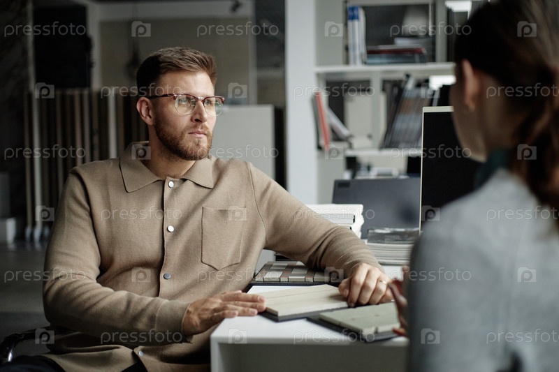 Молодой взрослый мужчина внимательно слушает во время деловой встречи