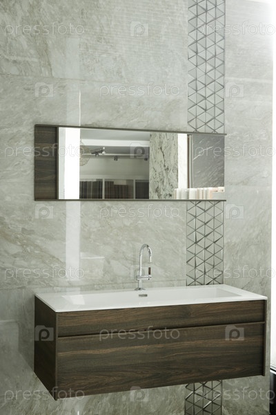 Ванная раковина с зеркалом отражает современный дизайн интерьера