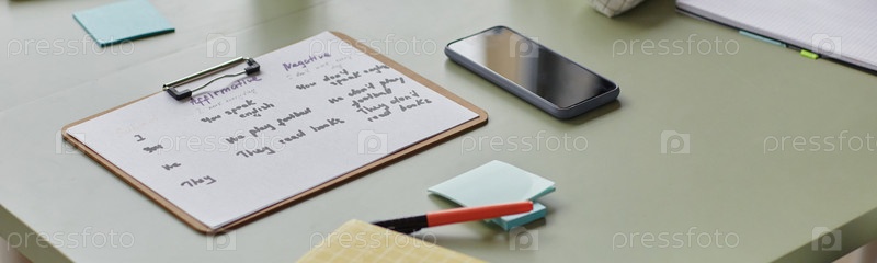 Header Image of Клипборд с упражнениями по английской грамматике на рабочем столе