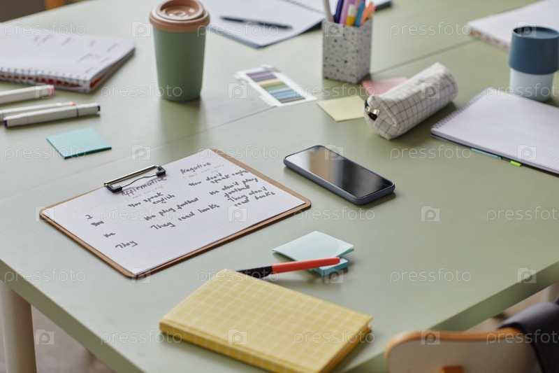 Таблица в классе языковой школы с отображением учебных материалов и смартфона