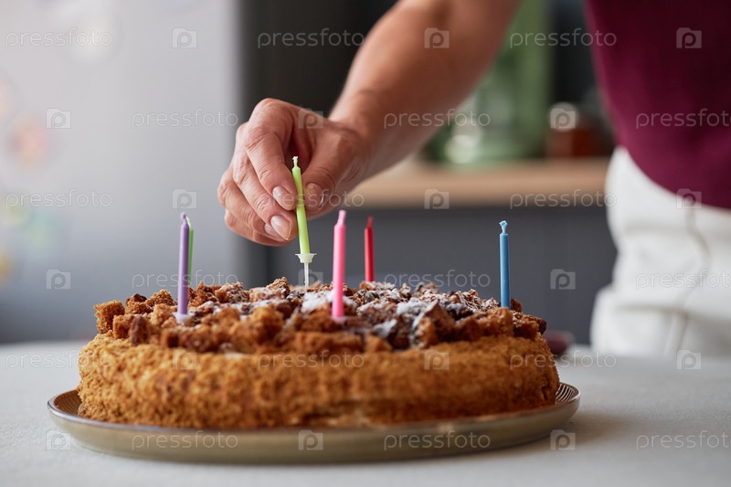 Женщина среднего возраста ставит свечу на рождественский торт в помещении