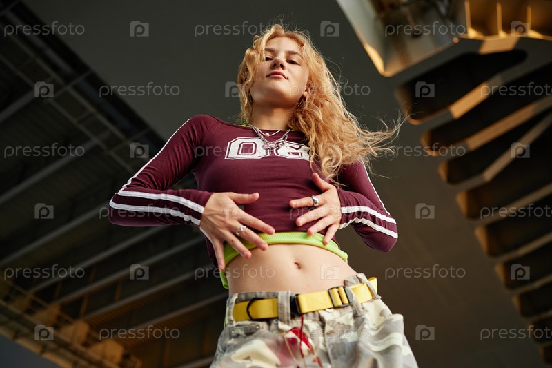 Gen Z Молодая женщина, стоящая на улице и выражающая уверенность