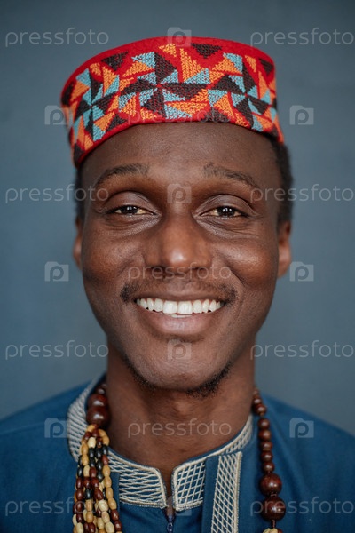 Портрет молодого взрослого чернокожего мужчины, улыбающегося во время празднования Кванзаа