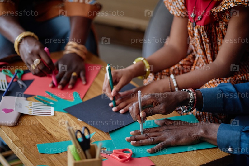 Черная женщина и ее ребенок создают Kwanzaa Crafts вместе за столом в помещении