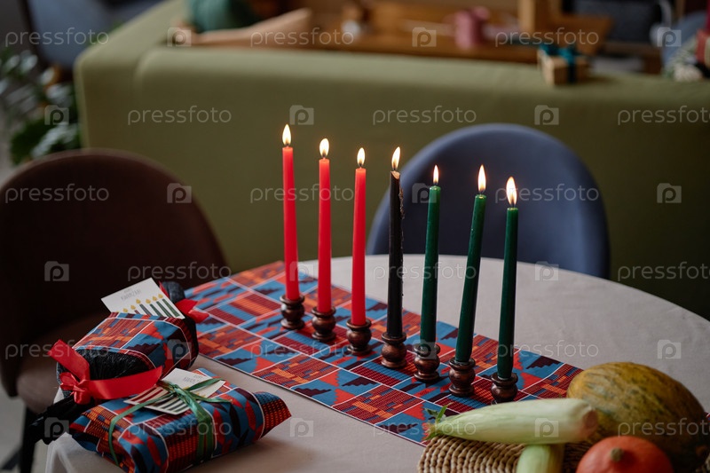 Зажигатель свечей Kwanzaa Kinara Displaying Lit Candles Прославление праздничных традиций