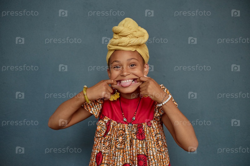 Портрет чернокожей девушки, улыбающейся игриво во время празднования традиции Кванза