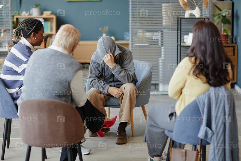 Разнообразная группа поддержки расстроенного подростка, сидящего на терапевтической сессии