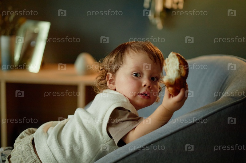 Портрет маленького мальчика, предлагающего выпечку
