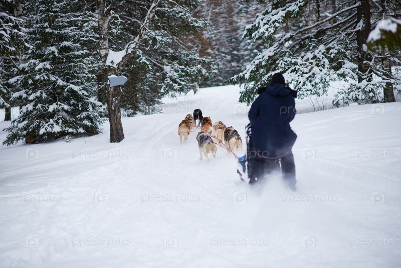 Команда водителей собачьих санистов проехала через снежный лес