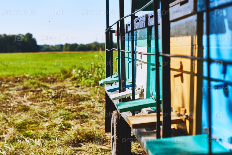 Красочные ульи стоят на свежем воздухе в солнечный день в сельской деревне