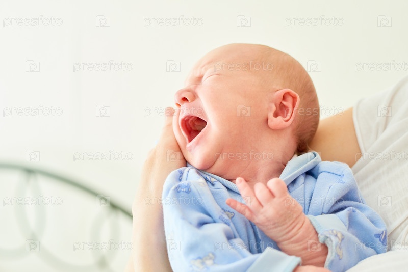 Ребенок плачет, когда его утешает взрослая рука внутри
