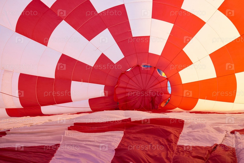 Внутренняя часть навеса надувного воздушного шарика с горячим воздухом показывает красный и рисунок