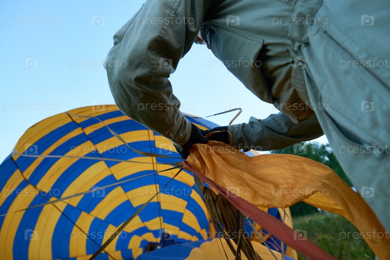 Человек, готовящий воздушный шар для приключений на открытом воздухе
