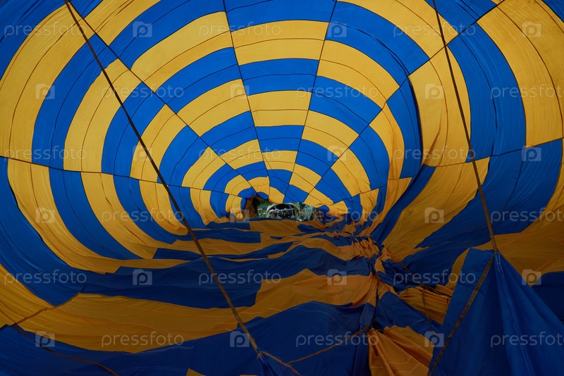 Работа внутри надутого горячего воздушного шара Человек, готовящийся к полету